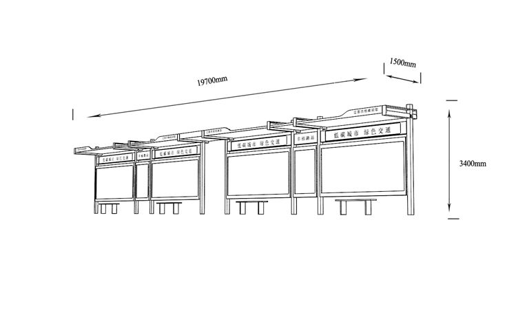產(chǎn)品外觀 / PRODUCT DETAILS 產(chǎn)品信息 / PRODUCT INFO 【產(chǎn)品名稱】:城市品位候車亭PW9 【產(chǎn)品系列】:城市品位候車亭 【產(chǎn)品型號】:PW9 【產(chǎn)品規(guī)格】:長10800mm 寬1700mm 高2900mm 【產(chǎn)品材質(zhì)】:熱鍍鋅鋼板 【使用年限】:10-15年 【詳情致電】:181-5189-0417、157-5170-8886 備注:產(chǎn)品可根據(jù)用戶需求選用材質(zhì)、顏色及配件,個性化定制。 1、表面采用靜電噴塑(氟碳烤漆/搪瓷處理) 2、頂棚采用100*100*1.5mm、100*150*2mm鍍鋅管,3mm鍍鋅板激光切割件、1.5mm鍍鋅板焊接骨架,鋪1mm鍍鋅板(10mm陽光板) 3、立柱采用150*150*3mm鍍鋅管 4、箱體采用1.5mm鍍鋅板折彎焊接成型,門框采用全玻鋁合金型材,視窗采用6mm鋼化玻璃 5、照明電器采用LED燈粒 產(chǎn)品尺寸 / PRODUCT SIZE 關(guān)于輝盛 / 為社會分擔(dān)責(zé)任,為客戶創(chuàng)造價值 宿遷輝盛廣告設(shè)備有限公司是一家集設(shè)計、研發(fā)、生產(chǎn)為一體的城市公共設(shè)施生產(chǎn)型企業(yè)。主要產(chǎn)品有:候車公交亭、公交站臺、閱報欄、路名牌、垃圾箱、燈箱等市政設(shè)施系列產(chǎn)品和工程配套設(shè)施系列產(chǎn)品,現(xiàn)有高級技師30多人,高級職稱設(shè)計人員10人,是一家具有自主開發(fā)和設(shè)計能力的以公交亭、智能公交為主導(dǎo)的綜合性城市公共設(shè)施制造企業(yè)。為了進(jìn)一步改善生產(chǎn)工藝,提高產(chǎn)品質(zhì)量,公司引進(jìn)了先進(jìn)生產(chǎn)設(shè)備,包括立臥式加工中心,工業(yè)涂裝流水線,CNC車床,線切割機(jī),大型數(shù)控板機(jī),數(shù)控折邊機(jī),數(shù)控沖孔機(jī)床,大型折彎機(jī)等。公司還專門成立了產(chǎn)品研發(fā)部門,現(xiàn)每年自主開發(fā)或應(yīng)客戶要求設(shè)計推出多款新產(chǎn)品。 榮譽(yù)資質(zhì) / ENTERPRISE HONOR