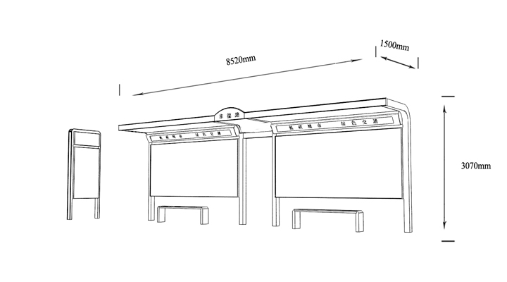 產(chǎn)品外觀 / PRODUCT DETAILS 產(chǎn)品信息 / PRODUCT INFO 【產(chǎn)品名稱】:城市品位候車亭PW3 【產(chǎn)品系列】:城市品位候車亭 【產(chǎn)品型號】:PW3 【產(chǎn)品規(guī)格】:長10800mm 寬1700mm 高2900mm 【產(chǎn)品材質】:熱鍍鋅鋼板 【使用年限】:10-15年 【詳情致電】:181-5189-0417、157-5170-8886 備注:產(chǎn)品可根據(jù)用戶需求選用材質、顏色及配件,個性化定制。 1、表面采用靜電噴塑(氟碳烤漆/搪瓷處理) 2、頂棚采用100*100*1.5mm、100*150*2mm鍍鋅管,3mm鍍鋅板激光切割件、1.5mm鍍鋅板焊接骨架,鋪1mm鍍鋅板(10mm陽光板) 3、立柱采用150*150*3mm鍍鋅管 4、箱體采用1.5mm鍍鋅板折彎焊接成型,門框采用全玻鋁合金型材,視窗采用6mm鋼化玻璃 5、照明電器采用LED燈粒 產(chǎn)品尺寸 / PRODUCT SIZE 關于輝盛 / 為社會分擔責任,為客戶創(chuàng)造價值 宿遷輝盛廣告設備有限公司是一家集設計、研發(fā)、生產(chǎn)為一體的城市公共設施生產(chǎn)型企業(yè)。主要產(chǎn)品有:候車公交亭、公交站臺、閱報欄、路名牌、垃圾箱、燈箱等市政設施系列產(chǎn)品和工程配套設施系列產(chǎn)品,現(xiàn)有高級技師30多人,高級職稱設計人員10人,是一家具有自主開發(fā)和設計能力的以公交亭、智能公交為主導的綜合性城市公共設施制造企業(yè)。為了進一步改善生產(chǎn)工藝,提高產(chǎn)品質量,公司引進了先進生產(chǎn)設備,包括立臥式加工中心,工業(yè)涂裝流水線,CNC車床,線切割機,大型數(shù)控板機,數(shù)控折邊機,數(shù)控沖孔機床,大型折彎機等。公司還專門成立了產(chǎn)品研發(fā)部門,現(xiàn)每年自主開發(fā)或應客戶要求設計推出多款新產(chǎn)品。 榮譽資質 / ENTERPRISE HONOR