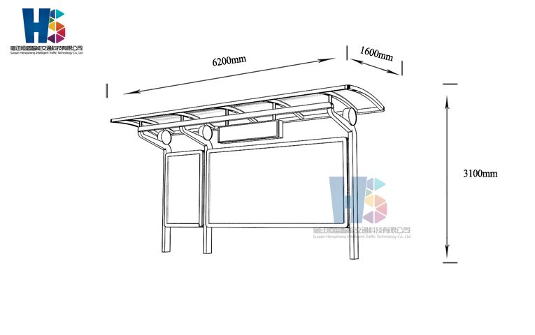 產(chǎn)品外觀 / PRODUCT DETAILS 產(chǎn)品信息 / PRODUCT INFO 【產(chǎn)品名稱】:簡約款式候車亭JY13 【產(chǎn)品系列】:簡約款式候車亭 【產(chǎn)品型號】:JY13 【產(chǎn)品規(guī)格】:長10800mm 寬1700mm 高2900mm 【產(chǎn)品材質(zhì)】:熱鍍鋅鋼板 【使用年限】:10-15年 【詳情致電】:181-5189-0417、157-5170-8886 備注:產(chǎn)品可根據(jù)用戶需求選用材質(zhì)、顏色及配件,個(gè)性化定制。 1、表面采用靜電噴塑(氟碳烤漆/搪瓷處理) 2、頂棚采用100*100*1.5mm、100*150*2mm鍍鋅管,3mm鍍鋅板激光切割件、1.5mm鍍鋅板焊接骨架,鋪1mm鍍鋅板(10mm陽光板) 3、立柱采用150*150*3mm鍍鋅管 4、箱體采用1.5mm鍍鋅板折彎焊接成型,門框采用全玻鋁合金型材,視窗采用6mm鋼化玻璃 5、照明電器采用LED燈粒 產(chǎn)品尺寸 / PRODUCT SIZE 關(guān)于輝盛 / 為社會分擔(dān)責(zé)任,為客戶創(chuàng)造價(jià)值 宿遷輝盛廣告設(shè)備有限公司是一家集設(shè)計(jì)、研發(fā)、生產(chǎn)為一體的城市公共設(shè)施生產(chǎn)型企業(yè)。主要產(chǎn)品有:候車公交亭、公交站臺、閱報(bào)欄、路名牌、垃圾箱、燈箱等市政設(shè)施系列產(chǎn)品和工程配套設(shè)施系列產(chǎn)品,現(xiàn)有高級技師30多人,高級職稱設(shè)計(jì)人員10人,是一家具有自主開發(fā)和設(shè)計(jì)能力的以公交亭、智能公交為主導(dǎo)的綜合性城市公共設(shè)施制造企業(yè)。為了進(jìn)一步改善生產(chǎn)工藝,提高產(chǎn)品質(zhì)量,公司引進(jìn)了先進(jìn)生產(chǎn)設(shè)備,包括立臥式加工中心,工業(yè)涂裝流水線,CNC車床,線切割機(jī),大型數(shù)控板機(jī),數(shù)控折邊機(jī),數(shù)控沖孔機(jī)床,大型折彎機(jī)等。公司還專門成立了產(chǎn)品研發(fā)部門,現(xiàn)每年自主開發(fā)或應(yīng)客戶要求設(shè)計(jì)推出多款新產(chǎn)品。 榮譽(yù)資質(zhì) / ENTERPRISE HONOR
