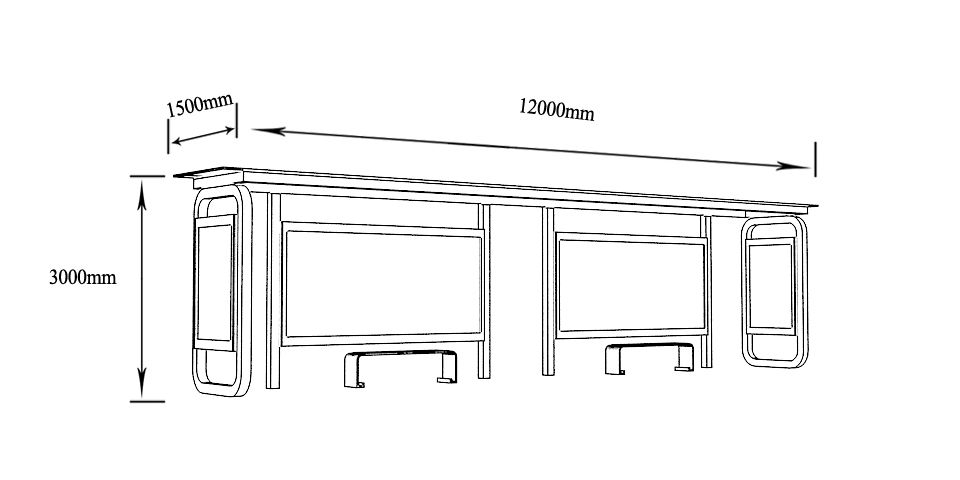 產(chǎn)品外觀 / PRODUCT DETAILS 產(chǎn)品信息 / PRODUCT INFO 【產(chǎn)品名稱】:簡約款式候車亭JY8 【產(chǎn)品系列】:簡約款式候車亭 【產(chǎn)品型號】:JY8 【產(chǎn)品規(guī)格】:長10800mm 寬1700mm 高2900mm 【產(chǎn)品材質(zhì)】:熱鍍鋅鋼板 【使用年限】:10-15年 【詳情致電】:181-5189-0417、157-5170-8886 備注:產(chǎn)品可根據(jù)用戶需求選用材質(zhì)、顏色及配件,個性化定制。 1、表面采用靜電噴塑(氟碳烤漆/搪瓷處理) 2、頂棚采用100*100*1.5mm、100*150*2mm鍍鋅管,3mm鍍鋅板激光切割件、1.5mm鍍鋅板焊接骨架,鋪1mm鍍鋅板(10mm陽光板) 3、立柱采用150*150*3mm鍍鋅管 4、箱體采用1.5mm鍍鋅板折彎焊接成型,門框采用全玻鋁合金型材,視窗采用6mm鋼化玻璃 5、照明電器采用LED燈粒 產(chǎn)品尺寸 / PRODUCT SIZE 關(guān)于輝盛 / 為社會分擔(dān)責(zé)任,為客戶創(chuàng)造價值 宿遷輝盛廣告設(shè)備有限公司是一家集設(shè)計、研發(fā)、生產(chǎn)為一體的城市公共設(shè)施生產(chǎn)型企業(yè)。主要產(chǎn)品有:候車公交亭、公交站臺、閱報欄、路名牌、垃圾箱、燈箱等市政設(shè)施系列產(chǎn)品和工程配套設(shè)施系列產(chǎn)品,現(xiàn)有高級技師30多人,高級職稱設(shè)計人員10人,是一家具有自主開發(fā)和設(shè)計能力的以公交亭、智能公交為主導(dǎo)的綜合性城市公共設(shè)施制造企業(yè)。為了進一步改善生產(chǎn)工藝,提高產(chǎn)品質(zhì)量,公司引進了先進生產(chǎn)設(shè)備,包括立臥式加工中心,工業(yè)涂裝流水線,CNC車床,線切割機,大型數(shù)控板機,數(shù)控折邊機,數(shù)控沖孔機床,大型折彎機等。公司還專門成立了產(chǎn)品研發(fā)部門,現(xiàn)每年自主開發(fā)或應(yīng)客戶要求設(shè)計推出多款新產(chǎn)品。 榮譽資質(zhì) / ENTERPRISE HONOR