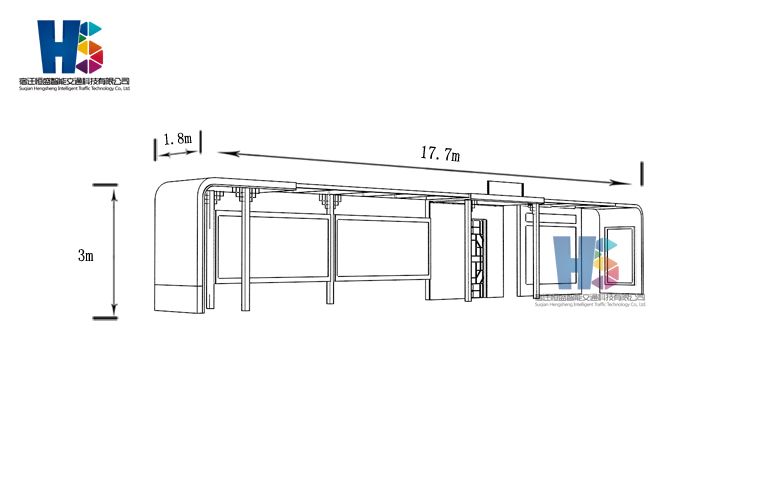 產(chǎn)品外觀 / PRODUCT DETAILS 產(chǎn)品信息 / PRODUCT INFO 【產(chǎn)品名稱】:歐美風范候車亭OM5 【產(chǎn)品系列】:歐美風范候車亭 【產(chǎn)品型號】:OM5 【產(chǎn)品規(guī)格】:長10800mm 寬1700mm 高2900mm 【產(chǎn)品材質(zhì)】:熱鍍鋅鋼板 【使用年限】:10-15年 【詳情致電】:181-5189-0417、157-5170-8886 備注:產(chǎn)品可根據(jù)用戶需求選用材質(zhì)、顏色及配件,個性化定制。 1、表面采用靜電噴塑(氟碳烤漆/搪瓷處理) 2、頂棚采用100*100*1.5mm、100*150*2mm鍍鋅管,3mm鍍鋅板激光切割件、1.5mm鍍鋅板焊接骨架,鋪1mm鍍鋅板(10mm陽光板) 3、立柱采用150*150*3mm鍍鋅管 4、箱體采用1.5mm鍍鋅板折彎焊接成型,門框采用全玻鋁合金型材,視窗采用6mm鋼化玻璃 5、照明電器采用LED燈粒 產(chǎn)品尺寸 / PRODUCT SIZE 關(guān)于輝盛 / 為社會分擔責任,為客戶創(chuàng)造價值 宿遷輝盛廣告設備有限公司是一家集設計、研發(fā)、生產(chǎn)為一體的城市公共設施生產(chǎn)型企業(yè)。主要產(chǎn)品有:候車公交亭、公交站臺、閱報欄、路名牌、垃圾箱、燈箱等市政設施系列產(chǎn)品和工程配套設施系列產(chǎn)品,現(xiàn)有高級技師30多人,高級職稱設計人員10人,是一家具有自主開發(fā)和設計能力的以公交亭、智能公交為主導的綜合性城市公共設施制造企業(yè)。為了進一步改善生產(chǎn)工藝,提高產(chǎn)品質(zhì)量,公司引進了先進生產(chǎn)設備,包括立臥式加工中心,工業(yè)涂裝流水線,CNC車床,線切割機,大型數(shù)控板機,數(shù)控折邊機,數(shù)控沖孔機床,大型折彎機等。公司還專門成立了產(chǎn)品研發(fā)部門,現(xiàn)每年自主開發(fā)或應客戶要求設計推出多款新產(chǎn)品。 榮譽資質(zhì) / ENTERPRISE HONOR