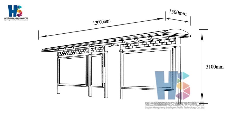 產品外觀 / PRODUCT DETAILS 產品信息 / PRODUCT INFO 【產品名稱】:鄉(xiāng)村風采候車亭XC2 【產品系列】:鄉(xiāng)村風采候車亭 【產品型號】:XC2 【產品規(guī)格】:長10800mm 寬1700mm 高2900mm 【產品材質】:熱鍍鋅鋼板 【使用年限】:10-15年 【詳情致電】:181-5189-0417、157-5170-8886 備注:產品可根據(jù)用戶需求選用材質、顏色及配件,個性化定制。 1、表面采用靜電噴塑(氟碳烤漆/搪瓷處理) 2、頂棚采用100*100*1.5mm、100*150*2mm鍍鋅管,3mm鍍鋅板激光切割件、1.5mm鍍鋅板焊接骨架,鋪1mm鍍鋅板(10mm陽光板) 3、立柱采用150*150*3mm鍍鋅管 4、箱體采用1.5mm鍍鋅板折彎焊接成型,門框采用全玻鋁合金型材,視窗采用6mm鋼化玻璃 5、照明電器采用LED燈粒 產品尺寸 / PRODUCT SIZE 關于輝盛 / 為社會分擔責任,為客戶創(chuàng)造價值 宿遷輝盛廣告設備有限公司是一家集設計、研發(fā)、生產為一體的城市公共設施生產型企業(yè)。主要產品有:候車公交亭、公交站臺、閱報欄、路名牌、垃圾箱、燈箱等市政設施系列產品和工程配套設施系列產品,現(xiàn)有高級技師30多人,高級職稱設計人員10人,是一家具有自主開發(fā)和設計能力的以公交亭、智能公交為主導的綜合性城市公共設施制造企業(yè)。為了進一步改善生產工藝,提高產品質量,公司引進了先進生產設備,包括立臥式加工中心,工業(yè)涂裝流水線,CNC車床,線切割機,大型數(shù)控板機,數(shù)控折邊機,數(shù)控沖孔機床,大型折彎機等。公司還專門成立了產品研發(fā)部門,現(xiàn)每年自主開發(fā)或應客戶要求設計推出多款新產品。 榮譽資質 / ENTERPRISE HONOR