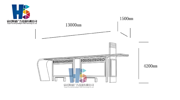 產(chǎn)品外觀 / PRODUCT DETAILS 產(chǎn)品信息 / PRODUCT INFO 【產(chǎn)品名稱(chēng)】:新款候車(chē)亭HS52 【產(chǎn)品系列】:新款候車(chē)亭 【產(chǎn)品型號(hào)】:HS52 【產(chǎn)品規(guī)格】:長(zhǎng)13000mm 寬1500mm 高4200mm 【產(chǎn)品材質(zhì)】:熱鍍鋅鋼板 【使用年限】:10-15年 【詳情致電】:181-5189-0417、157-5170-8886 備注:產(chǎn)品可根據(jù)用戶需求選用材質(zhì)、顏色及配件,個(gè)性化定制。 1、表面采用靜電噴塑(氟碳烤漆/搪瓷處理) 2、頂棚采用100*100*1.5mm、100*150*2mm鍍鋅管,3mm鍍鋅板激光切割件、1.5mm鍍鋅板焊接骨架,鋪1mm鍍鋅板(10mm陽(yáng)光板) 3、立柱采用150*150*3mm鍍鋅管 4、箱體采用1.5mm鍍鋅板折彎焊接成型,門(mén)框采用全玻鋁合金型材,視窗采用6mm鋼化玻璃 5、照明電器采用LED燈粒 產(chǎn)品尺寸 / PRODUCT SIZE 關(guān)于輝盛 / 為社會(huì)分擔(dān)責(zé)任,為客戶創(chuàng)造價(jià)值 宿遷輝盛廣告設(shè)備有限公司是一家集設(shè)計(jì)、研發(fā)、生產(chǎn)為一體的城市公共設(shè)施生產(chǎn)型企業(yè)。主要產(chǎn)品有:候車(chē)公交亭、公交站臺(tái)、閱報(bào)欄、路名牌、垃圾箱、燈箱等市政設(shè)施系列產(chǎn)品和工程配套設(shè)施系列產(chǎn)品,現(xiàn)有高級(jí)技師30多人,高級(jí)職稱(chēng)設(shè)計(jì)人員10人,是一家具有自主開(kāi)發(fā)和設(shè)計(jì)能力的以公交亭、智能公交為主導(dǎo)的綜合性城市公共設(shè)施制造企業(yè)。為了進(jìn)一步改善生產(chǎn)工藝,提高產(chǎn)品質(zhì)量,公司引進(jìn)了先進(jìn)生產(chǎn)設(shè)備,包括立臥式加工中心,工業(yè)涂裝流水線,CNC車(chē)床,線切割機(jī),大型數(shù)控板機(jī),數(shù)控折邊機(jī),數(shù)控沖孔機(jī)床,大型折彎?rùn)C(jī)等。公司還專(zhuān)門(mén)成立了產(chǎn)品研發(fā)部門(mén),現(xiàn)每年自主開(kāi)發(fā)或應(yīng)客戶要求設(shè)計(jì)推出多款新產(chǎn)品。 榮譽(yù)資質(zhì) / ENTERPRISE HONOR
