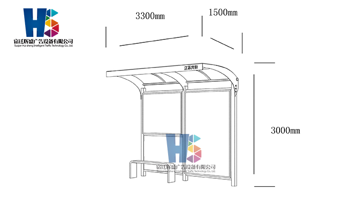 產(chǎn)品外觀 / PRODUCT DETAILS 產(chǎn)品信息 / PRODUCT INFO 【產(chǎn)品名稱】:新款候車亭HS50 【產(chǎn)品系列】:新款候車亭 【產(chǎn)品型號(hào)】:HS50 【產(chǎn)品規(guī)格】:長(zhǎng)3300mm 寬1500mm 高3000mm 【產(chǎn)品材質(zhì)】:熱鍍鋅鋼板 【使用年限】:10-15年 【詳情致電】:181-5189-0417、157-5170-8886 備注:產(chǎn)品可根據(jù)用戶需求選用材質(zhì)、顏色及配件,個(gè)性化定制。 1、表面采用靜電噴塑(氟碳烤漆/搪瓷處理) 2、頂棚采用100*100*1.5mm、100*150*2mm鍍鋅管,3mm鍍鋅板激光切割件、1.5mm鍍鋅板焊接骨架,鋪1mm鍍鋅板(10mm陽光板) 3、立柱采用150*150*3mm鍍鋅管 4、箱體采用1.5mm鍍鋅板折彎焊接成型,門框采用全玻鋁合金型材,視窗采用6mm鋼化玻璃 5、照明電器采用LED燈粒 產(chǎn)品尺寸 / PRODUCT SIZE 關(guān)于輝盛 / 為社會(huì)分擔(dān)責(zé)任,為客戶創(chuàng)造價(jià)值 宿遷輝盛廣告設(shè)備有限公司是一家集設(shè)計(jì)、研發(fā)、生產(chǎn)為一體的城市公共設(shè)施生產(chǎn)型企業(yè)。主要產(chǎn)品有:候車公交亭、公交站臺(tái)、閱報(bào)欄、路名牌、垃圾箱、燈箱等市政設(shè)施系列產(chǎn)品和工程配套設(shè)施系列產(chǎn)品,現(xiàn)有高級(jí)技師30多人,高級(jí)職稱設(shè)計(jì)人員10人,是一家具有自主開發(fā)和設(shè)計(jì)能力的以公交亭、智能公交為主導(dǎo)的綜合性城市公共設(shè)施制造企業(yè)。為了進(jìn)一步改善生產(chǎn)工藝,提高產(chǎn)品質(zhì)量,公司引進(jìn)了先進(jìn)生產(chǎn)設(shè)備,包括立臥式加工中心,工業(yè)涂裝流水線,CNC車床,線切割機(jī),大型數(shù)控板機(jī),數(shù)控折邊機(jī),數(shù)控沖孔機(jī)床,大型折彎?rùn)C(jī)等。公司還專門成立了產(chǎn)品研發(fā)部門,現(xiàn)每年自主開發(fā)或應(yīng)客戶要求設(shè)計(jì)推出多款新產(chǎn)品。 榮譽(yù)資質(zhì) / ENTERPRISE HONOR
