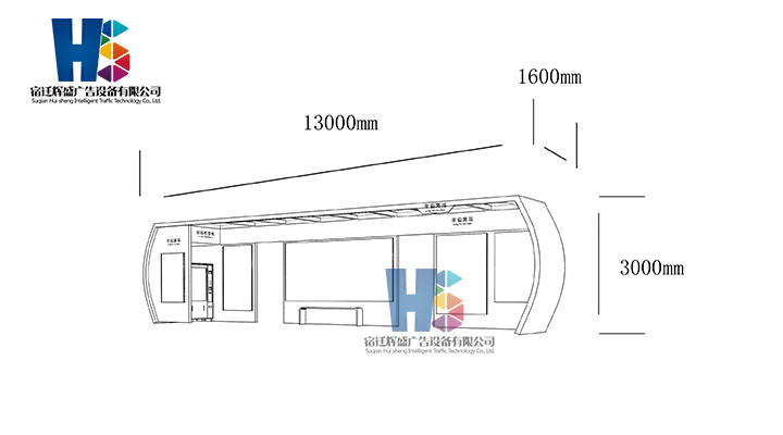 產(chǎn)品外觀 / PRODUCT DETAILS 產(chǎn)品信息 / PRODUCT INFO 【產(chǎn)品名稱】:新款候車亭HS40 【產(chǎn)品系列】:新款候車亭 【產(chǎn)品型號】:HS40 【產(chǎn)品規(guī)格】:長13000mm 寬1600mm 高3000mm 【產(chǎn)品材質(zhì)】:熱鍍鋅鋼板 【使用年限】:10-15年 【詳情致電】:181-5189-0417、157-5170-8886 備注:產(chǎn)品可根據(jù)用戶需求選用材質(zhì)、顏色及配件,個性化定制。 1、表面采用靜電噴塑(氟碳烤漆/搪瓷處理) 2、頂棚采用100*100*1.5mm、100*150*2mm鍍鋅管,3mm鍍鋅板激光切割件、1.5mm鍍鋅板焊接骨架,鋪1mm鍍鋅板(10mm陽光板) 3、立柱采用150*150*3mm鍍鋅管 4、箱體采用1.5mm鍍鋅板折彎焊接成型,門框采用全玻鋁合金型材,視窗采用6mm鋼化玻璃 5、照明電器采用LED燈粒 產(chǎn)品尺寸 / PRODUCT SIZE 關(guān)于輝盛 / 為社會分擔(dān)責(zé)任,為客戶創(chuàng)造價值 宿遷輝盛廣告設(shè)備有限公司是一家集設(shè)計、研發(fā)、生產(chǎn)為一體的城市公共設(shè)施生產(chǎn)型企業(yè)。主要產(chǎn)品有:候車公交亭、公交站臺、閱報欄、路名牌、垃圾箱、燈箱等市政設(shè)施系列產(chǎn)品和工程配套設(shè)施系列產(chǎn)品,現(xiàn)有高級技師30多人,高級職稱設(shè)計人員10人,是一家具有自主開發(fā)和設(shè)計能力的以公交亭、智能公交為主導(dǎo)的綜合性城市公共設(shè)施制造企業(yè)。為了進(jìn)一步改善生產(chǎn)工藝,提高產(chǎn)品質(zhì)量,公司引進(jìn)了先進(jìn)生產(chǎn)設(shè)備,包括立臥式加工中心,工業(yè)涂裝流水線,CNC車床,線切割機(jī),大型數(shù)控板機(jī),數(shù)控折邊機(jī),數(shù)控沖孔機(jī)床,大型折彎機(jī)等。公司還專門成立了產(chǎn)品研發(fā)部門,現(xiàn)每年自主開發(fā)或應(yīng)客戶要求設(shè)計推出多款新產(chǎn)品。 榮譽(yù)資質(zhì) / ENTERPRISE HONOR