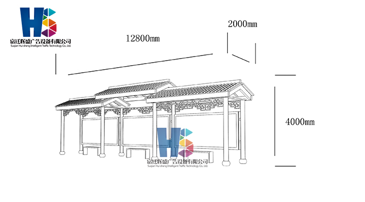產(chǎn)品外觀 / PRODUCT DETAILS 產(chǎn)品信息 / PRODUCT INFO 【產(chǎn)品名稱】:新款候車亭HS14 【產(chǎn)品系列】:新款候車亭 【產(chǎn)品型號】:HS14 【產(chǎn)品規(guī)格】:長12800mm 寬2000mm 高4000mm 【產(chǎn)品材質(zhì)】:熱鍍鋅鋼板 【使用年限】:10-15年 【詳情致電】:181-5189-0417、157-5170-8886 備注:產(chǎn)品可根據(jù)用戶需求選用材質(zhì)、顏色及配件,個性化定制。 1、表面采用靜電噴塑(氟碳烤漆/搪瓷處理) 2、頂棚采用100*100*1.5mm、100*150*2mm鍍鋅管,3mm鍍鋅板激光切割件、1.5mm鍍鋅板焊接骨架,鋪1mm鍍鋅板(10mm陽光板) 3、立柱采用150*150*3mm鍍鋅管 4、箱體采用1.5mm鍍鋅板折彎焊接成型,門框采用全玻鋁合金型材,視窗采用6mm鋼化玻璃 5、照明電器采用LED燈粒 產(chǎn)品尺寸 / PRODUCT SIZE 關(guān)于輝盛 / 為社會分擔責任,為客戶創(chuàng)造價值 宿遷輝盛廣告設(shè)備有限公司是一家集設(shè)計、研發(fā)、生產(chǎn)為一體的城市公共設(shè)施生產(chǎn)型企業(yè)。主要產(chǎn)品有:候車公交亭、公交站臺、閱報欄、路名牌、垃圾箱、燈箱等市政設(shè)施系列產(chǎn)品和工程配套設(shè)施系列產(chǎn)品,現(xiàn)有高級技師30多人,高級職稱設(shè)計人員10人,是一家具有自主開發(fā)和設(shè)計能力的以公交亭、智能公交為主導的綜合性城市公共設(shè)施制造企業(yè)。為了進一步改善生產(chǎn)工藝,提高產(chǎn)品質(zhì)量,公司引進了先進生產(chǎn)設(shè)備,包括立臥式加工中心,工業(yè)涂裝流水線,CNC車床,線切割機,大型數(shù)控板機,數(shù)控折邊機,數(shù)控沖孔機床,大型折彎機等。公司還專門成立了產(chǎn)品研發(fā)部門,現(xiàn)每年自主開發(fā)或應客戶要求設(shè)計推出多款新產(chǎn)品。 榮譽資質(zhì) / ENTERPRISE HONOR