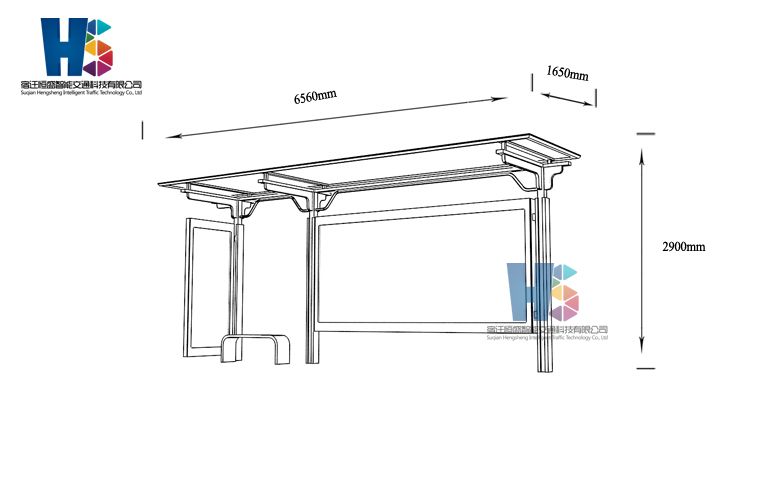 產(chǎn)品外觀 / PRODUCT DETAILS 產(chǎn)品信息 / PRODUCT INFO 【產(chǎn)品名稱】:中式古典候車亭GD8 【產(chǎn)品系列】:中式古典候車亭 【產(chǎn)品型號】:GD8 【產(chǎn)品規(guī)格】:長10800mm 寬1700mm 高2900mm 【產(chǎn)品材質(zhì)】:熱鍍鋅鋼板 【使用年限】:10-15年 【詳情致電】:181-5189-0417、157-5170-8886 備注:產(chǎn)品可根據(jù)用戶需求選用材質(zhì)、顏色及配件,個性化定制。 1、表面采用靜電噴塑(氟碳烤漆/搪瓷處理) 2、頂棚采用100*100*1.5mm、100*150*2mm鍍鋅管,3mm鍍鋅板激光切割件、1.5mm鍍鋅板焊接骨架,鋪1mm鍍鋅板(10mm陽光板) 3、立柱采用150*150*3mm鍍鋅管 4、箱體采用1.5mm鍍鋅板折彎焊接成型,門框采用全玻鋁合金型材,視窗采用6mm鋼化玻璃 5、照明電器采用LED燈粒 產(chǎn)品尺寸 / PRODUCT SIZE 關(guān)于輝盛 / 為社會分擔(dān)責(zé)任,為客戶創(chuàng)造價值 宿遷輝盛廣告設(shè)備有限公司是一家集設(shè)計、研發(fā)、生產(chǎn)為一體的城市公共設(shè)施生產(chǎn)型企業(yè)。主要產(chǎn)品有:候車公交亭、公交站臺、閱報欄、路名牌、垃圾箱、燈箱等市政設(shè)施系列產(chǎn)品和工程配套設(shè)施系列產(chǎn)品,現(xiàn)有高級技師30多人,高級職稱設(shè)計人員10人,是一家具有自主開發(fā)和設(shè)計能力的以公交亭、智能公交為主導(dǎo)的綜合性城市公共設(shè)施制造企業(yè)。為了進(jìn)一步改善生產(chǎn)工藝,提高產(chǎn)品質(zhì)量,公司引進(jìn)了先進(jìn)生產(chǎn)設(shè)備,包括立臥式加工中心,工業(yè)涂裝流水線,CNC車床,線切割機,大型數(shù)控板機,數(shù)控折邊機,數(shù)控沖孔機床,大型折彎機等。公司還專門成立了產(chǎn)品研發(fā)部門,現(xiàn)每年自主開發(fā)或應(yīng)客戶要求設(shè)計推出多款新產(chǎn)品。 榮譽資質(zhì) / ENTERPRISE HONOR